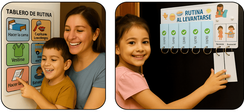 Es simple: usás rutinas visuales con imágenes claras que los niños entienden al instante.